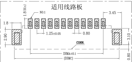 下圖給出此款1.25間距臥貼fpc連接器匹配線路板圖